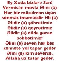 Salam axşamınız xeyirli ve berüketli olsun sizleri ağam Eli(e) mövludu münasibeti ile tebrik edirem