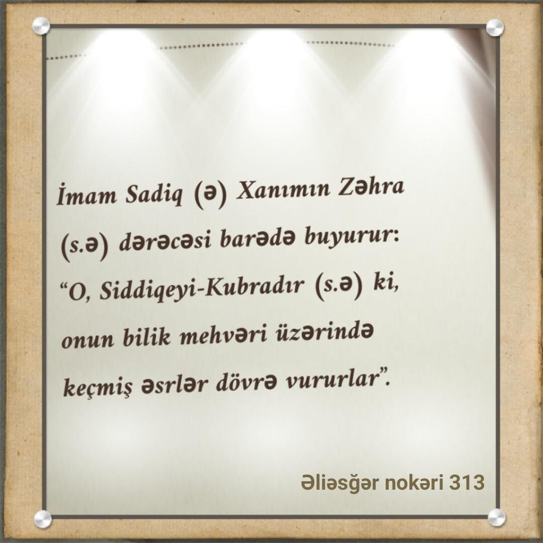 Məsumlardan Xanım Zəhra (s.ə) haqqında hədislər (şəkillərlə)