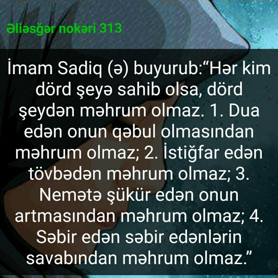 Allah razı olsun gözəl alınıb əllərin var olsun. Allah bu aya xatir bizləri bağışlasın və bizləri məsumların ardıcıllarından qərar versin inşallah.
